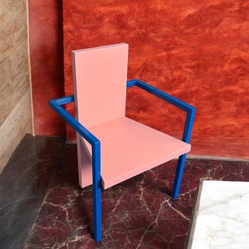 Disponible en una llamativa combinación de azul y rosa claro, esta silla no solo destaca por su diseño, sino también por su carácter. Ideal para quienes buscan piezas únicas que unen forma, confort y personalidad.